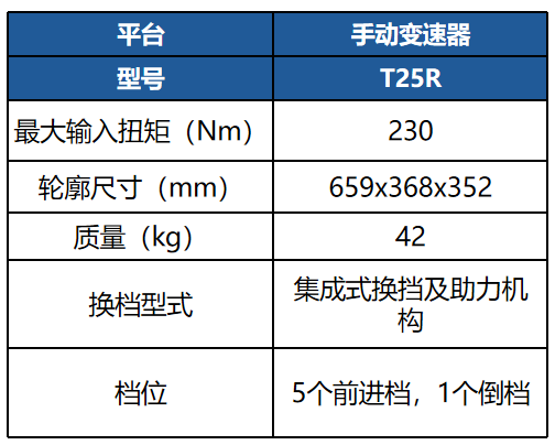 為滿足N20發(fā)動機匹配需求,全新開發(fā)T25R后驅(qū)大扭矩變速器,提供“動力總成一體化”解決方案;開發(fā)過程中,充分對標(biāo)日本愛信、青山、上齒等廠家多款變速器,在NVH和換檔性能等方面進行優(yōu)化提升,打造精品變速器;可適配輕卡、皮卡、MPV及SUV等車型。